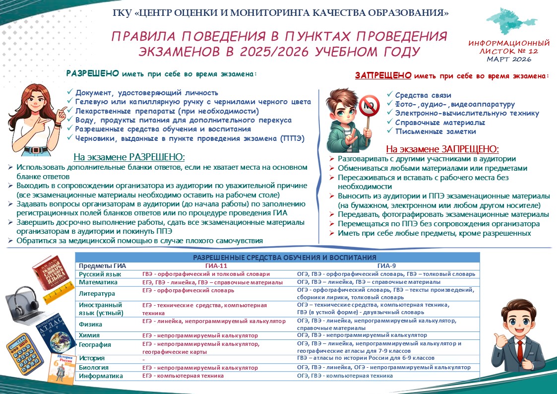 Заблаговременное ознакомление с правилами и процедурой экзамена снимет эффект неожиданности на экзамене. Тренировка в решении заданий поможет ориентироваться в разных типах заданий, рассчитывать время.