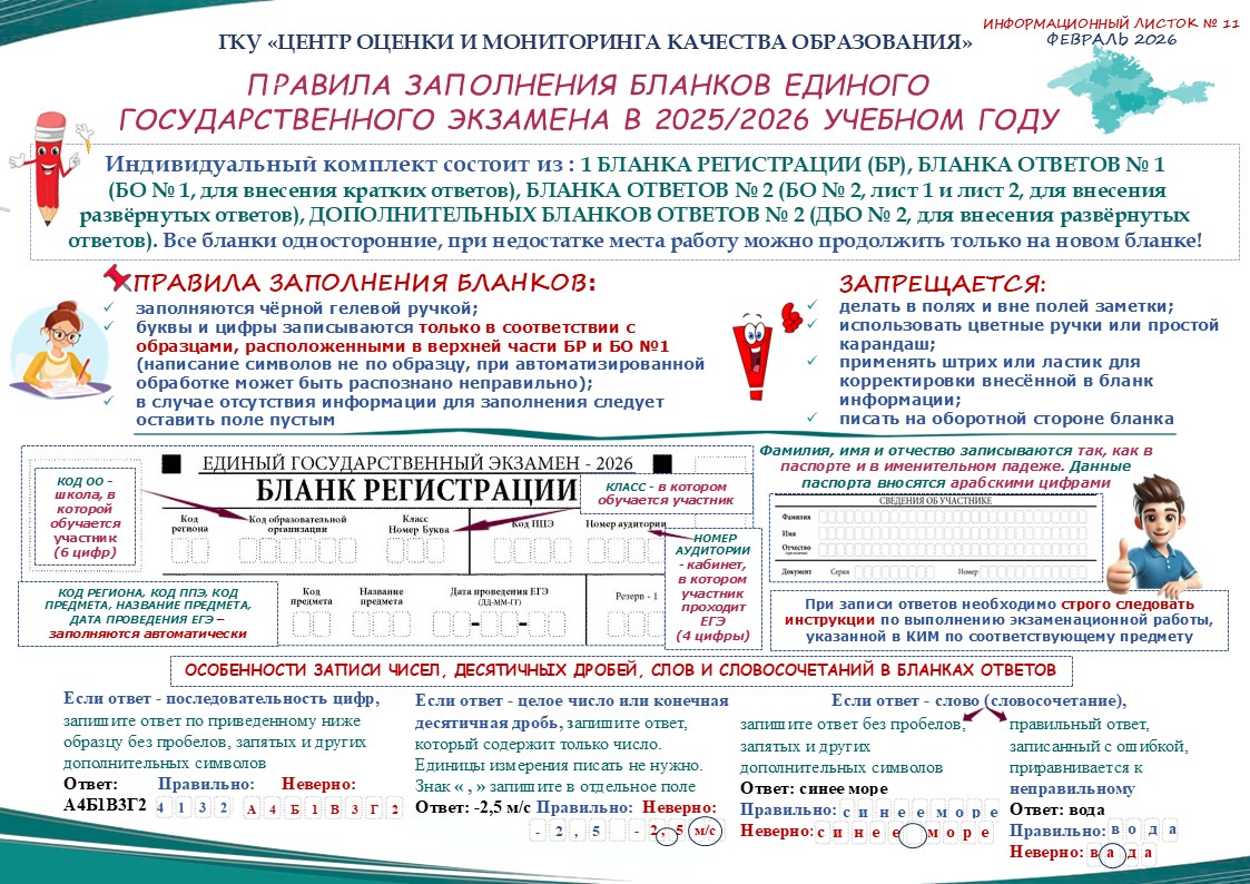 Заблаговременное ознакомление с правилами и процедурой экзамена снимет эффект неожиданности на экзамене. Тренировка в решении заданий поможет ориентироваться в разных типах заданий, рассчитывать время. С правилами заполнения бланков тоже можно ознакомиться заранее.