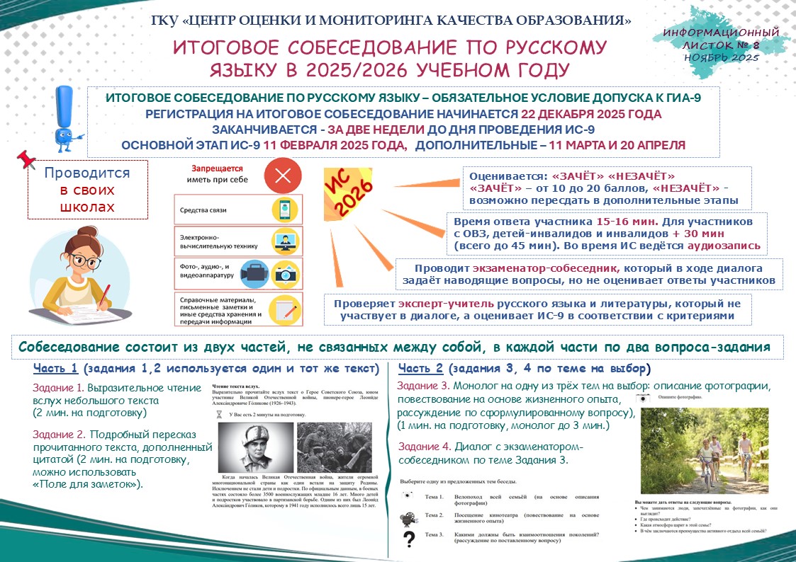 Информационный листок № 8 «Итоговое собеседование по русскому языку в 2025/2026 учебном году» https://ege-crimea.ru/wp-content/uploads/2025/11/il_8_26.jpg